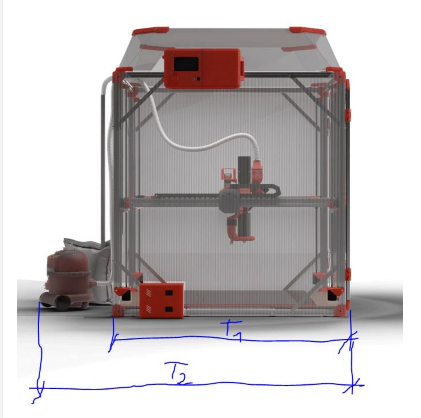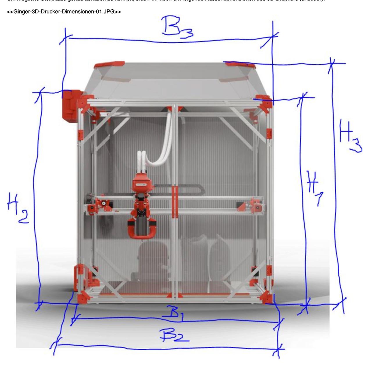 T2 hängt auch etwas von euch ab wie viel Platz ihr hinter dem Drucker benötigt für Materialwechsel etc. die von mir gewählten 70cm sind aber Minimum würde ich sagen.